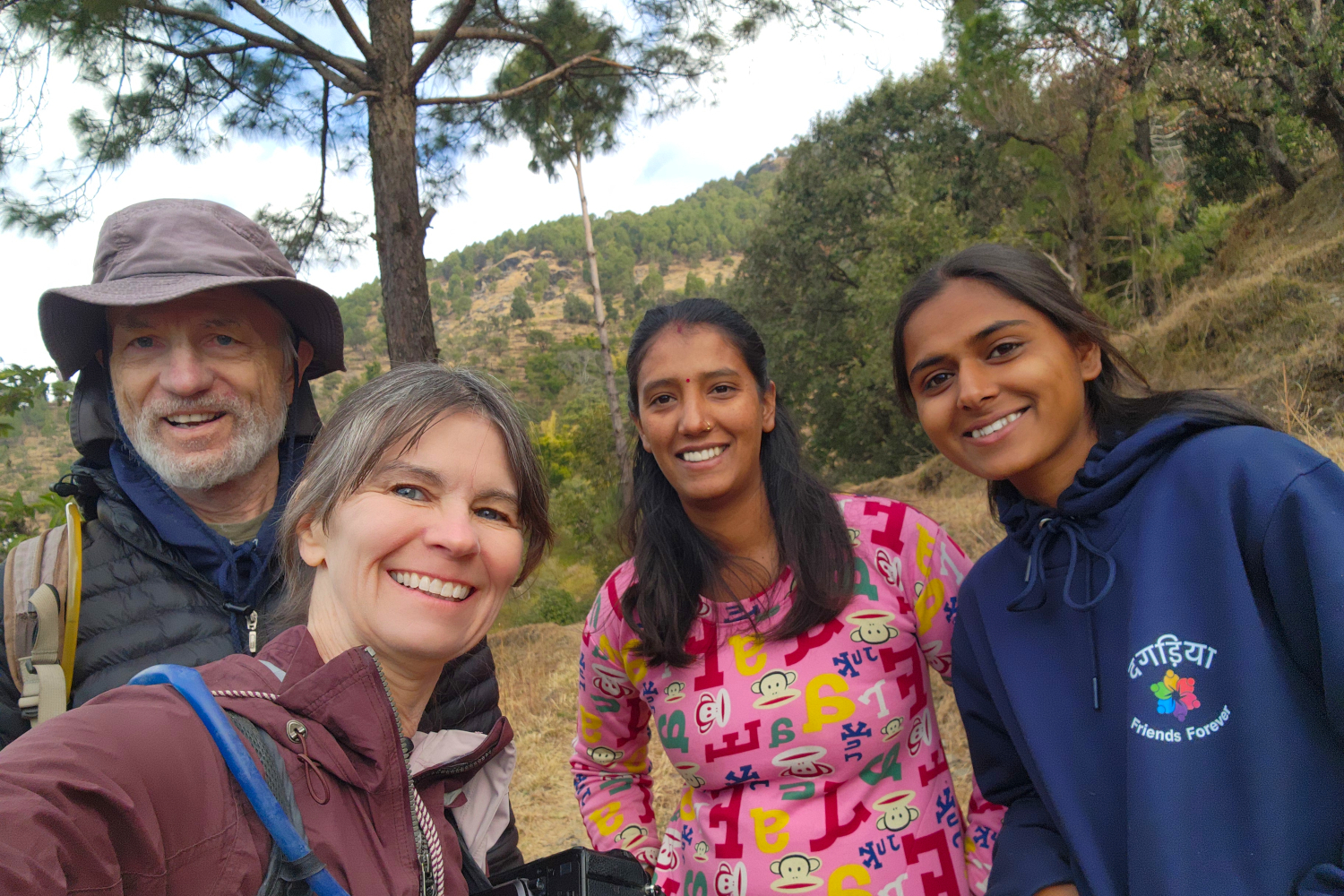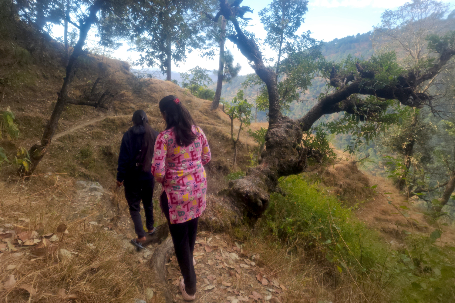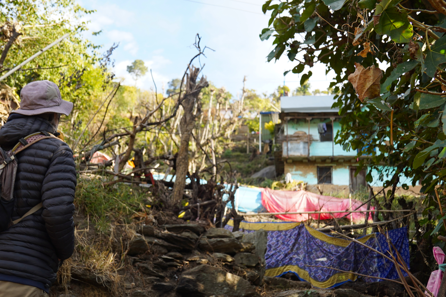 As we’re talking, out come two young ladies who participated in the Winter Camp — two of the older participants — who evidently are part of his family in some capacity. When it’s time for us to be on our way, as we have expressed some confusion about navigating the steep paths, these two accompany us for a bit to guide us where we want to go.