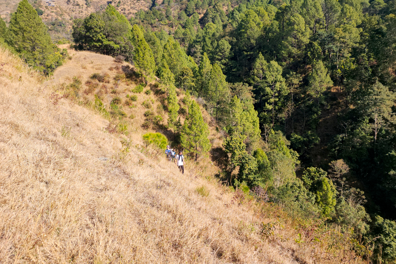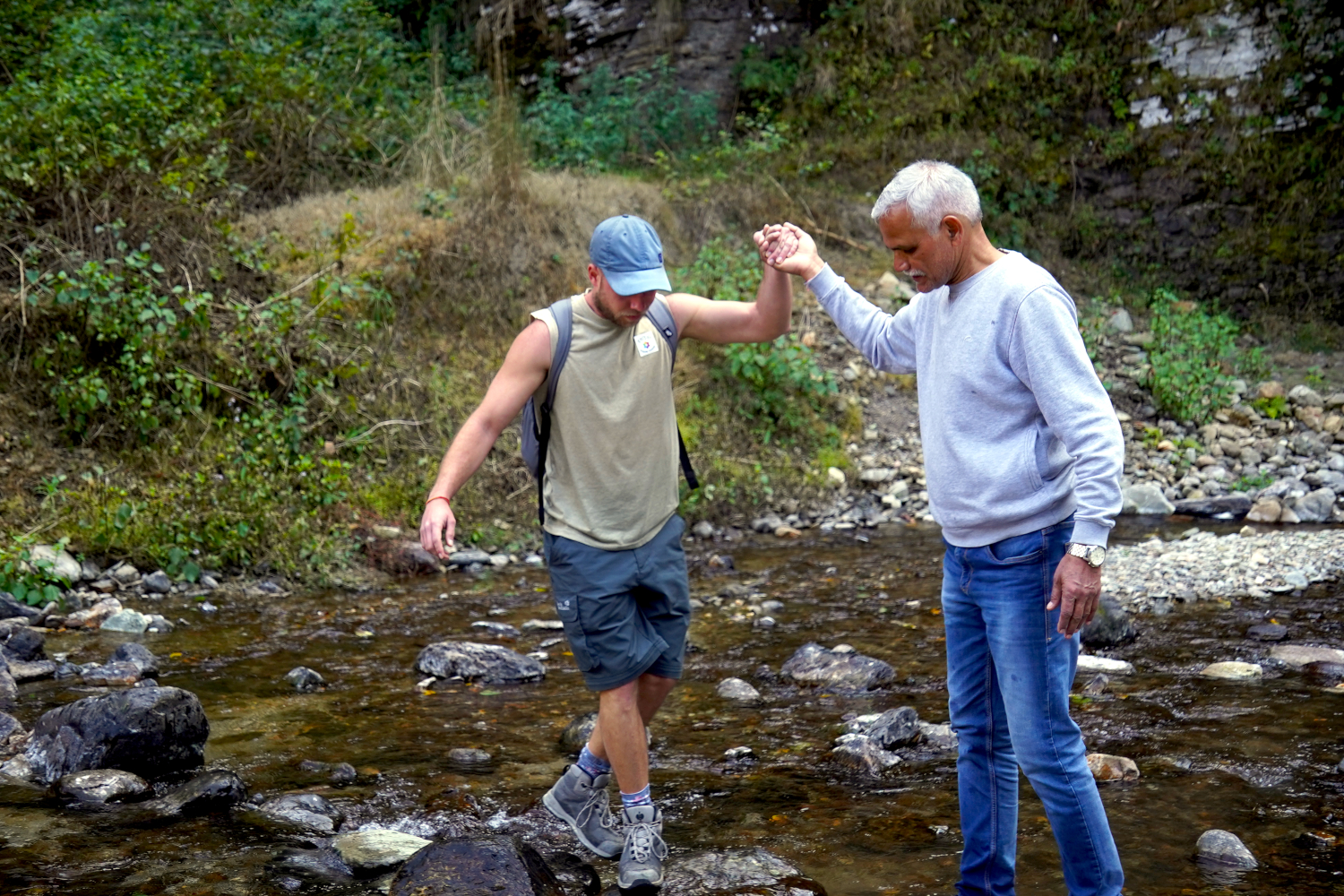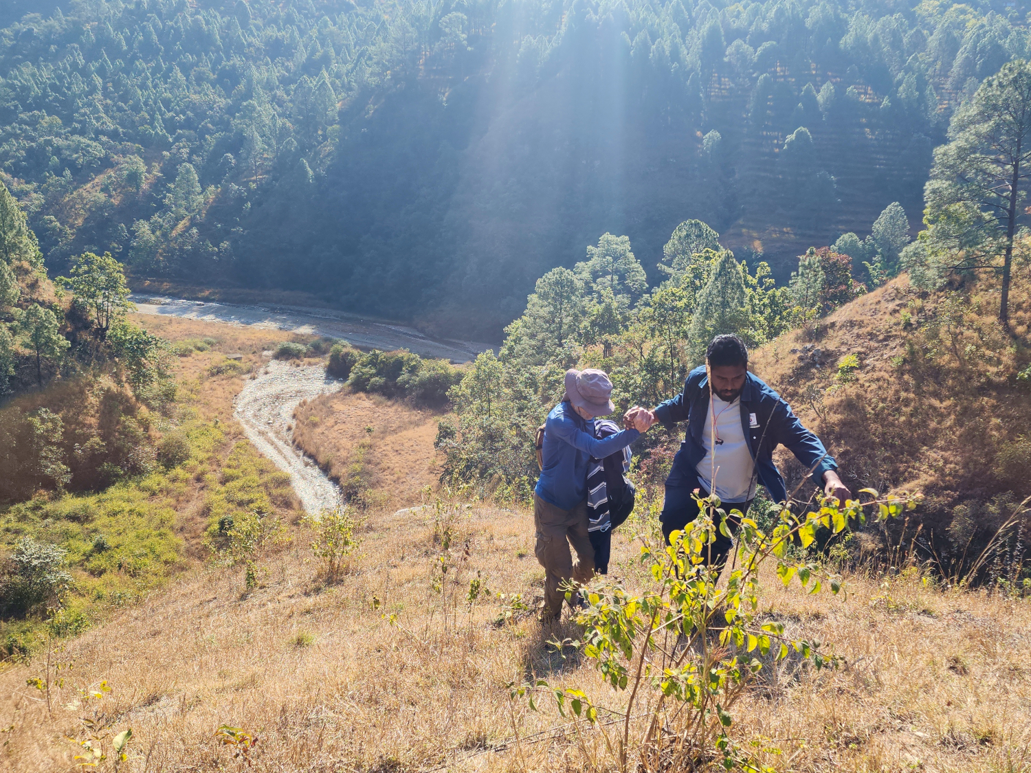There are mornings that begin with coffee and Internet browsing, and then there are mornings on which things really start going downhill. This was one of those days, but when we say going downhill, that’s not a bad thing; we mean literally downhill — way, way downhill into a valley with a river. We, along with nearly all the other WorkAway volunteers at the village of Shri Timli in the Himalayan foothills, were going on a Saturday hike, guided by Madhu, who had been one of the directors of the Winter Camp for girls that we recently helped out with.