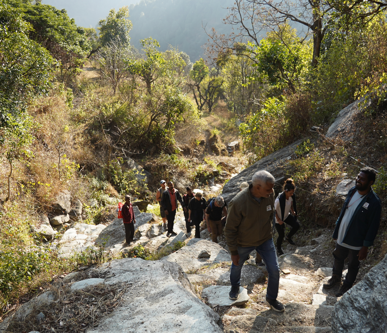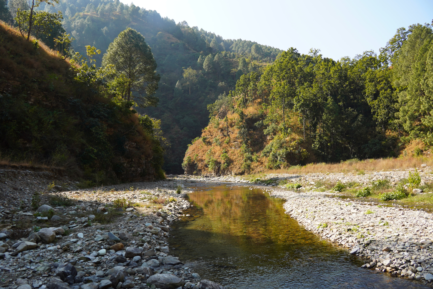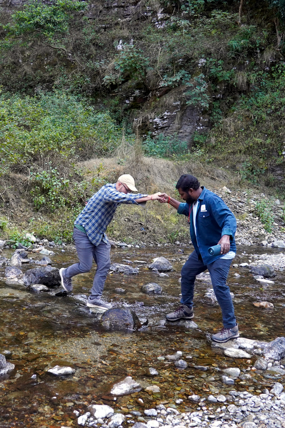 There are mornings that begin with coffee and Internet browsing, and then there are mornings on which things really start going downhill. This was one of those days, but when we say going downhill, that’s not a bad thing; we mean literally downhill — way, way downhill into a valley with a river. We, along with nearly all the other WorkAway volunteers at the village of Shri Timli in the Himalayan foothills, were going on a Saturday hike, guided by Madhu, who had been one of the directors of the Winter Camp for girls that we recently helped out with.