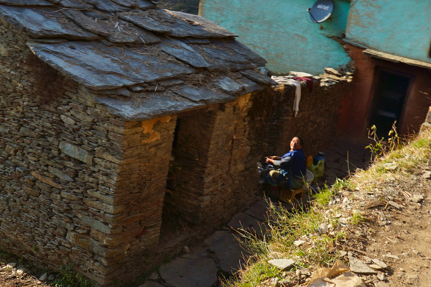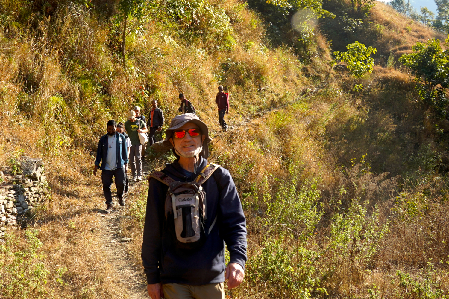 He’ll be joining us later on the trek, as he lives part of the way down the path. Near the top of the hill, we pass some men with a big load of solar panels to be installed somewhere. These are sorely needed, as getting sufficient power to the villages is sometimes a problem, especially during severe weather.