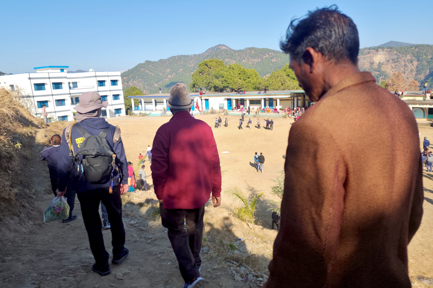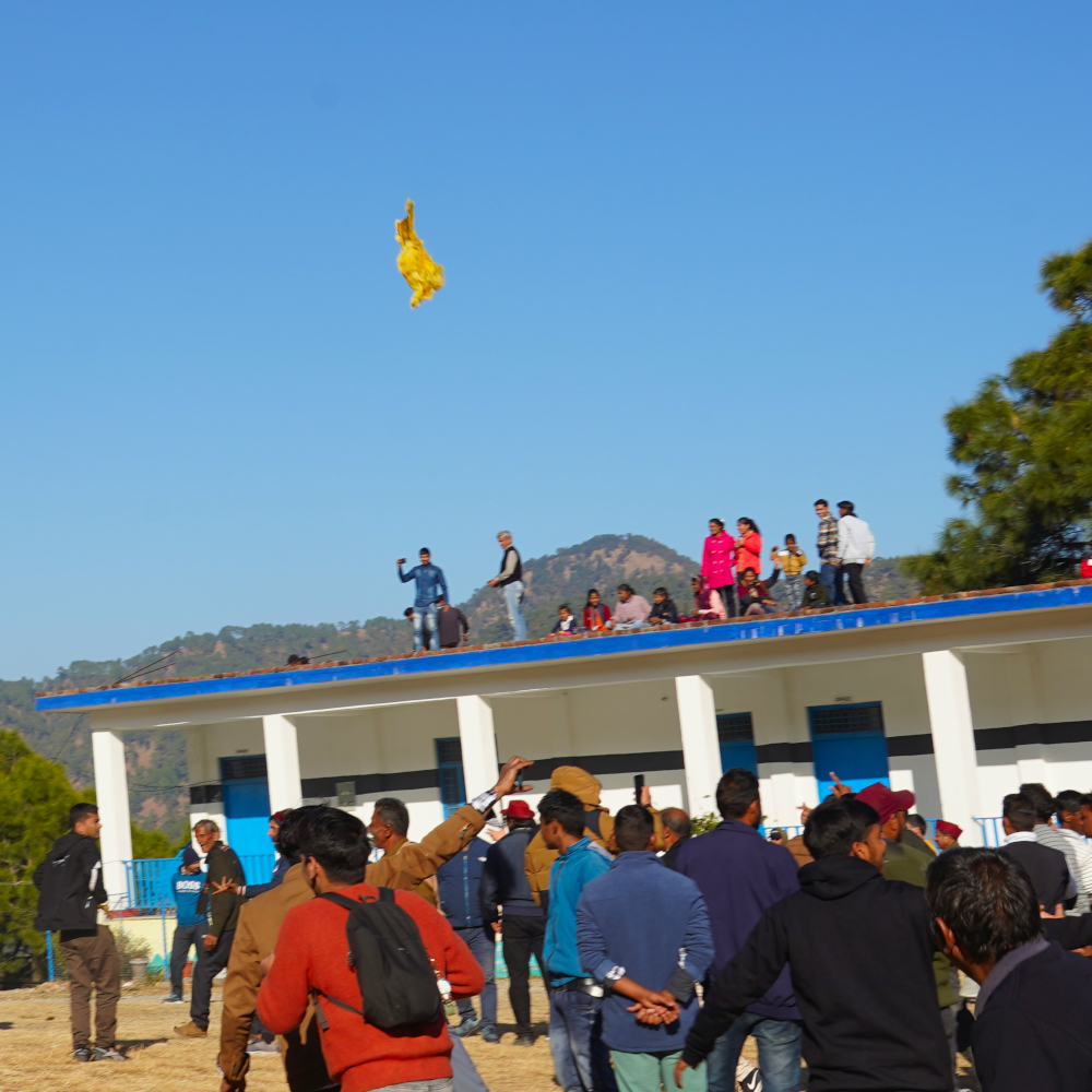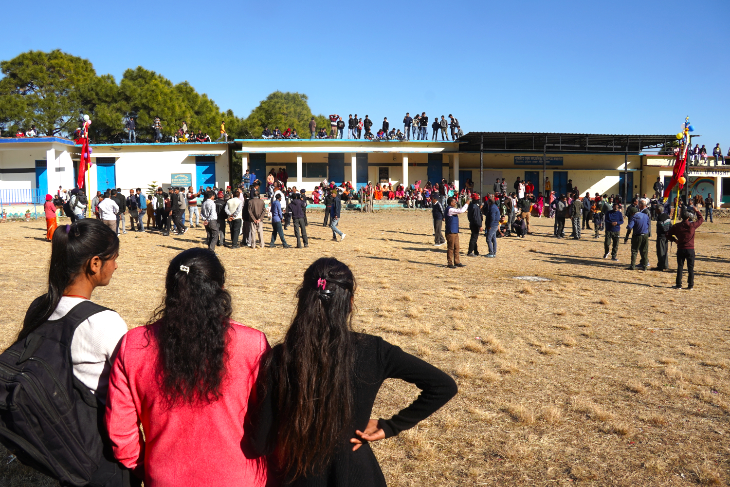 The mountain village of Devikhet, with a distant view of the snow-crusted Himalayas, is not exactly a booming metropolis. One online listing of communities in the Indian state of Uttarakhand refers to it as a “populated place”. The population of this place appears to be about a thousand, though you sometimes wonder where most of them are hiding. Its narrow winding streets are generally very sparse with traffic, vehicular or pedestrian. But on one particular day the village came to life in epic fashion, bursting at the seams with attendees streaming in from all the other communities in the surrounding hills, to attend a special festival — or mela, as they call it hereabouts. And we were fortunate enough to be on hand to witness it.