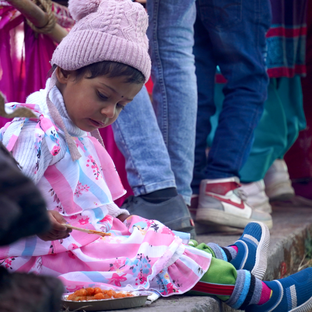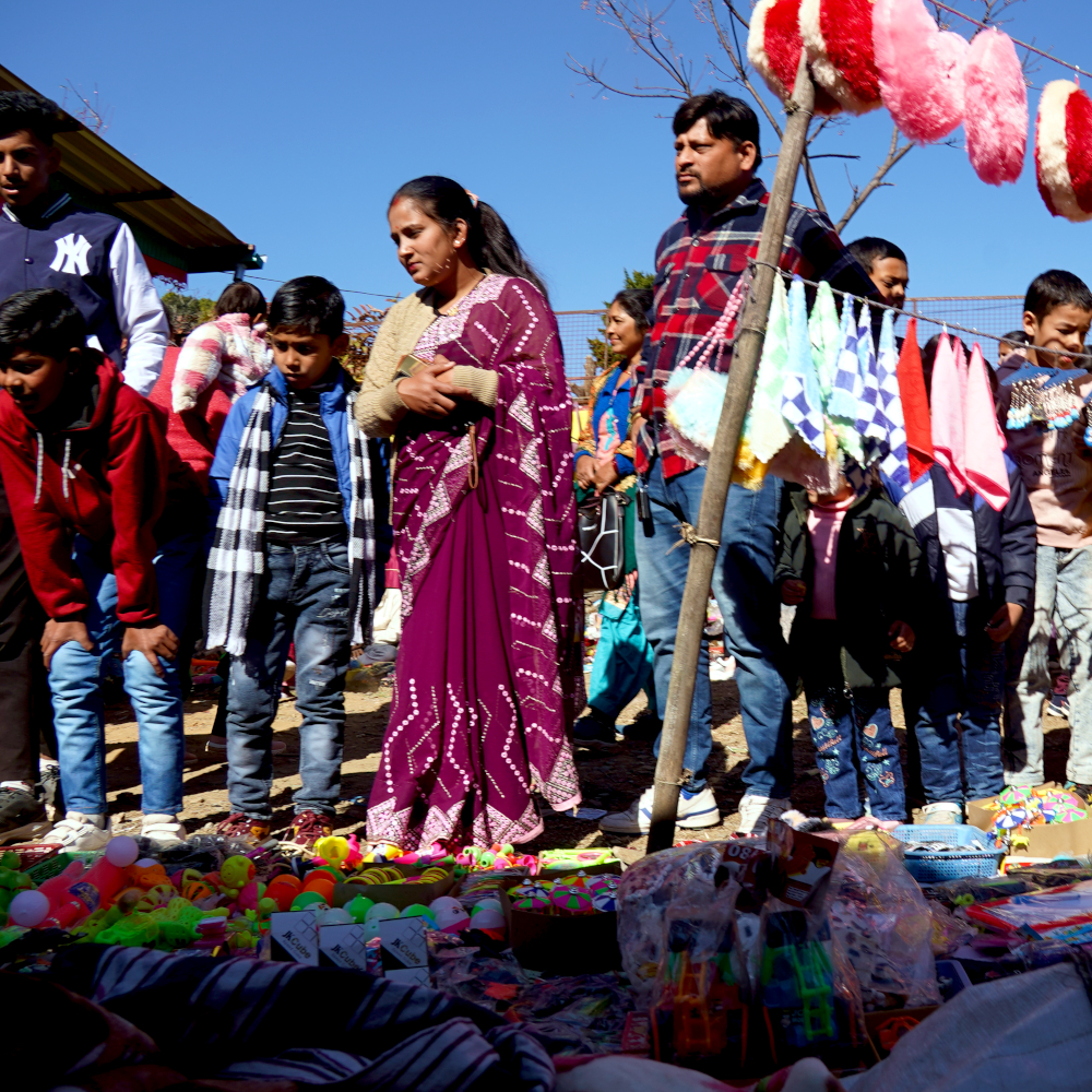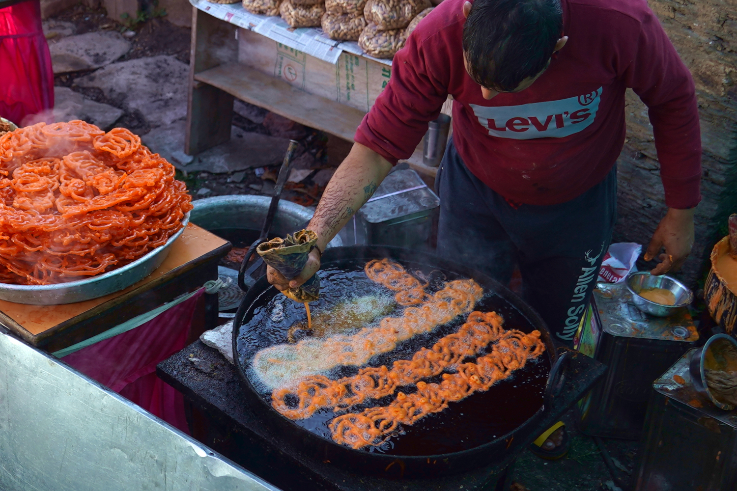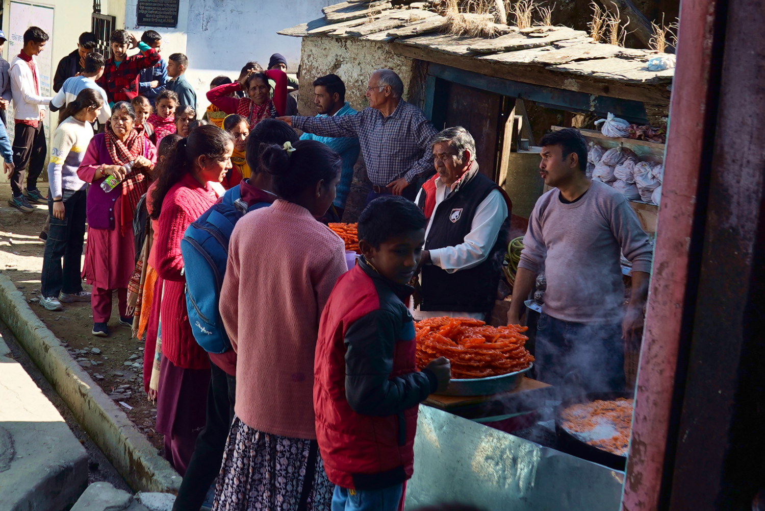 Growing tired of waiting for the game to begin, the two of us meander back to the shops we had passed. There we buy some peanuts in the shell. and some sweets (Indian sweets are amazing, and not too sweet) with the aid of an interpreter. Namely Madhu, one of the directors of the Winter Camp and our guide on the hike we had taken the day before — we just happen to run into him outside the shop.