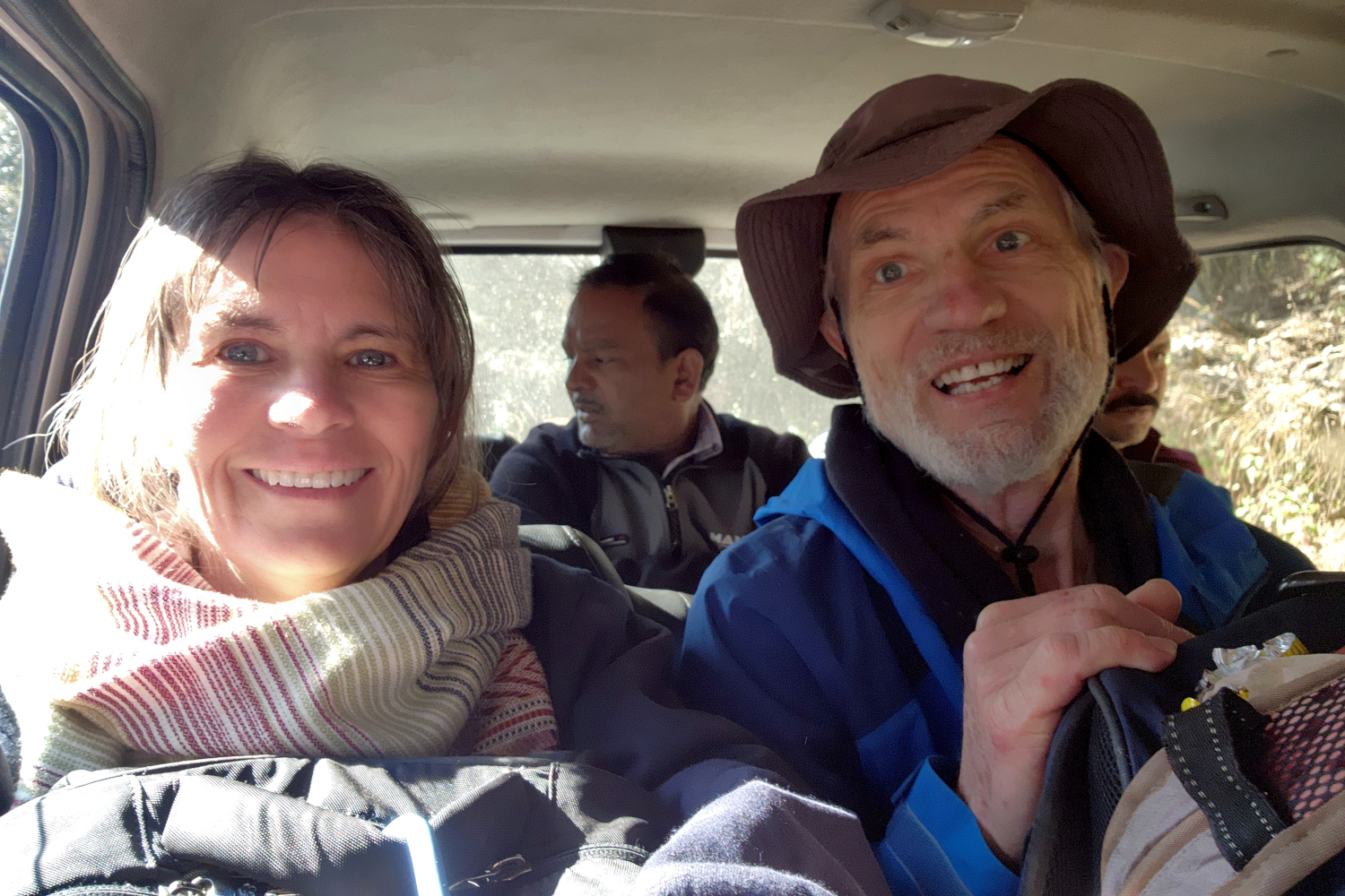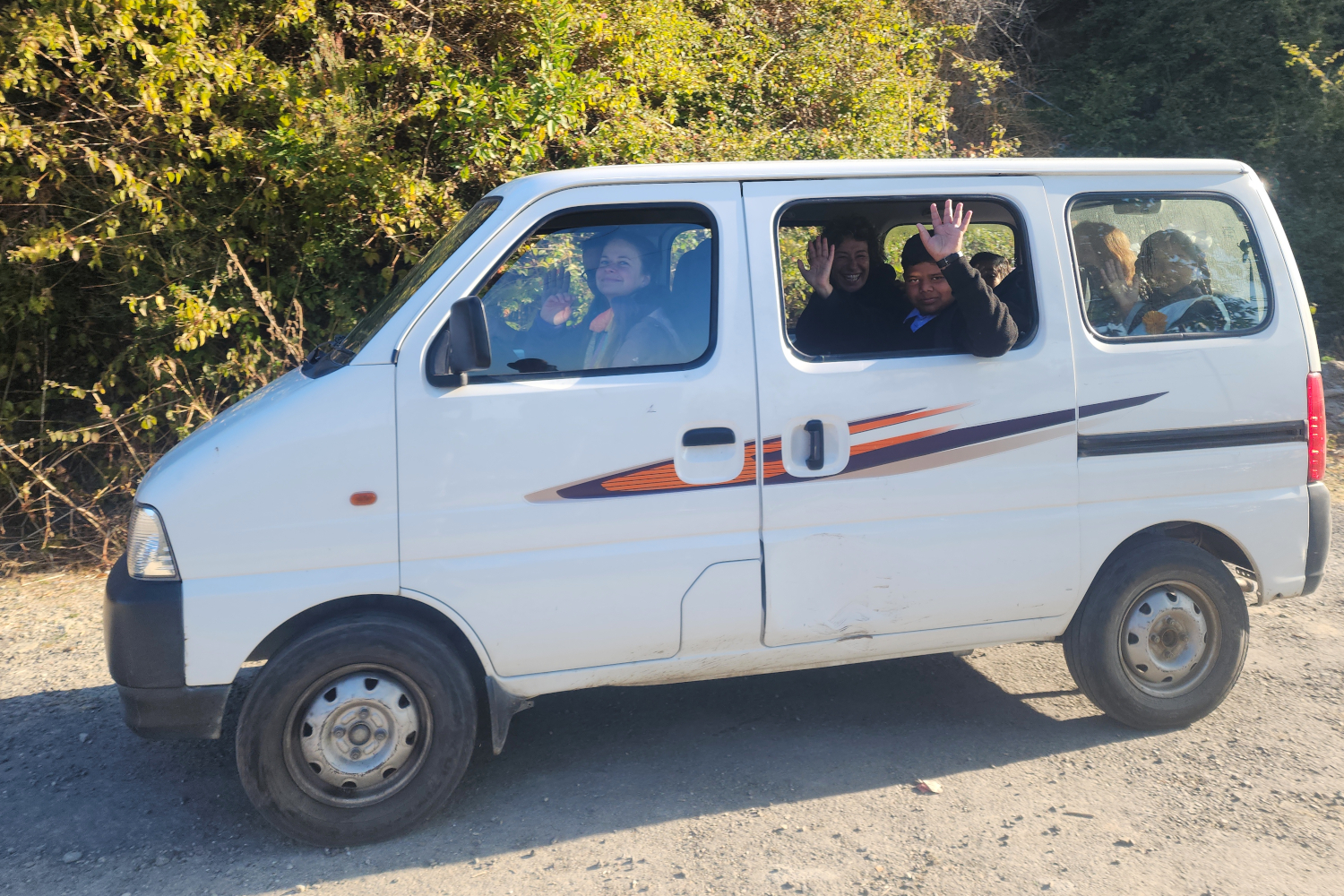 Meanwhile, the other volunteers traipse up the hill, on their way into the nearby village of Devikhet to teach at the school, where we’d been teaching as well. So at least we have the chance to say a proper goodbye to most of them. And then, our host, Ashish, whisks them away in his van, which as always he will use to deliver a couple of loads of students to school.