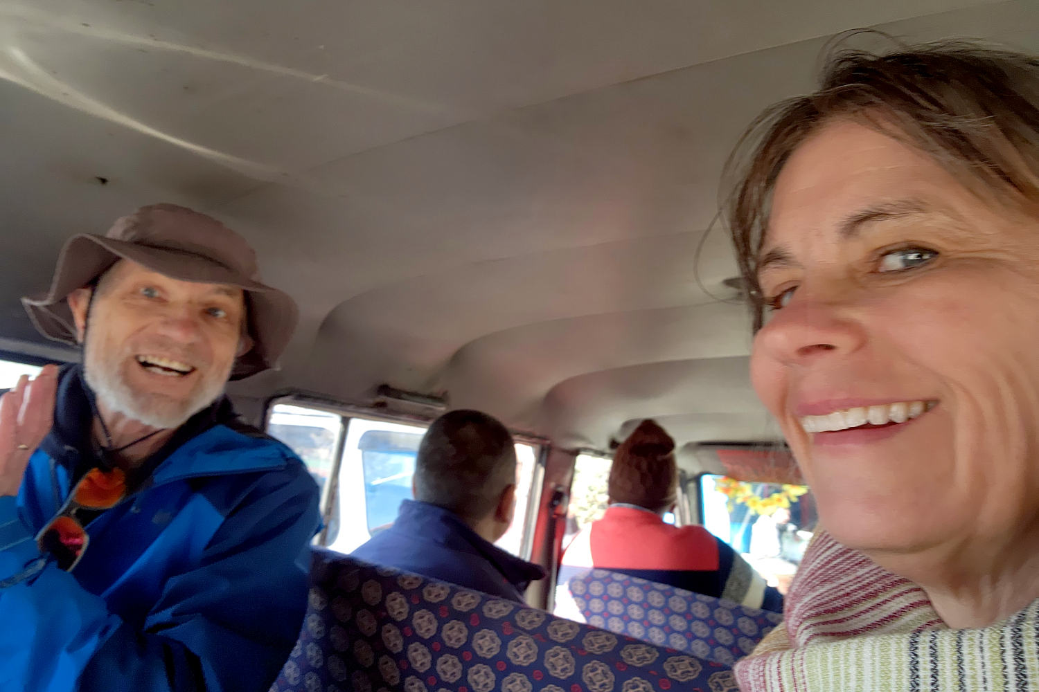 At least it isn’t as frigid as the ride up was, although there is a chilly wind whipping through an open window. We close it, and a fellow sitting next to it promptly opens it again. Then he explains through gestures, that he is feeling nausea and doesn’t want to have to take the time to open the window if he should feel the urge to purge. Given the choice, we’d rather be blanketed with cold air than with a stranger’s upchuck.