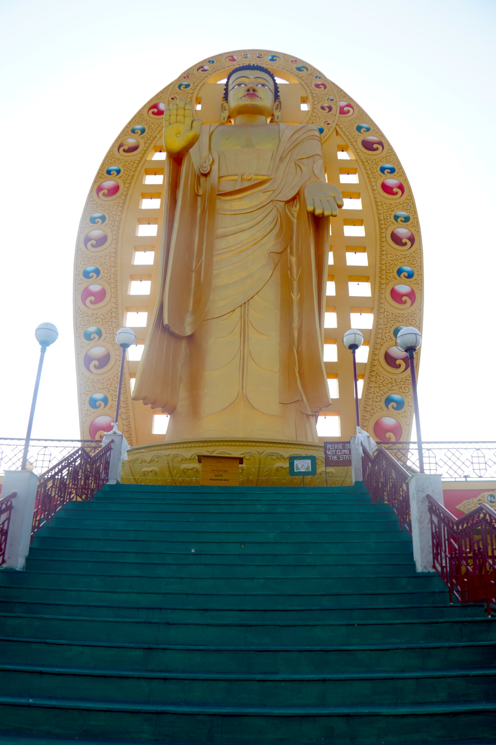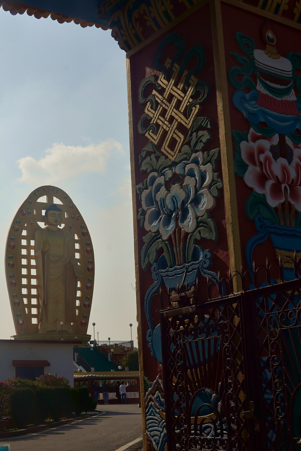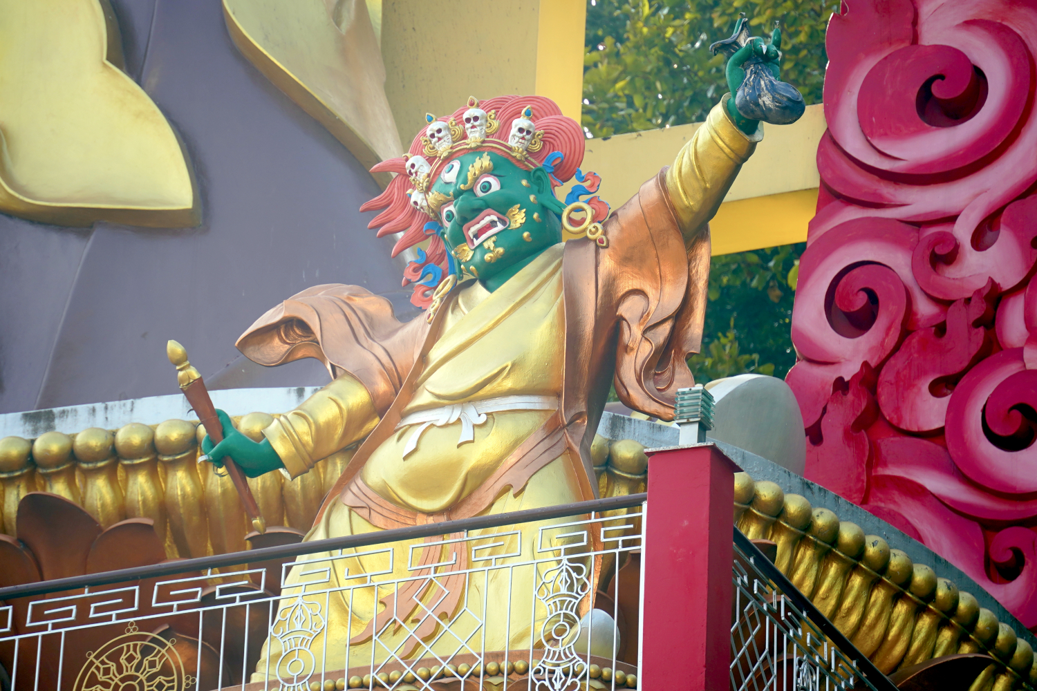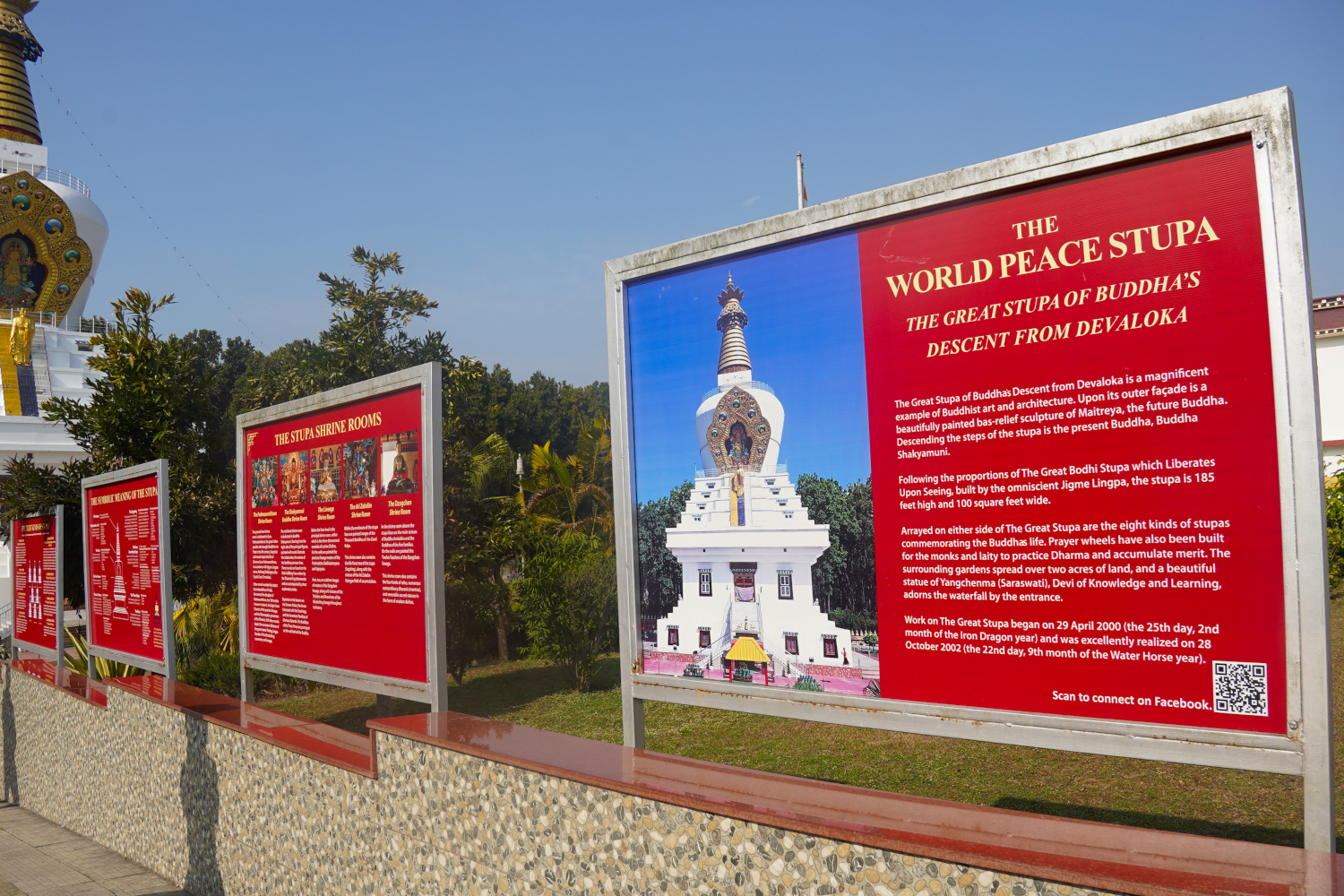 Strolling around the grounds, we encounter some rather head-scratching signs, including one warning that public display of affection is prohibited, and another forbidding the consumption of peanuts. And if you get caught making out under the trees with a jar of Planters in hand, you’re really in deep doo-doo. There are also prayer wheels, or more precisely prayer cylinders, of various sizes. They have mantras and other texts inscribed on them, so you can “recite” them by giving them a spin if you don’t want to get vocally involved.