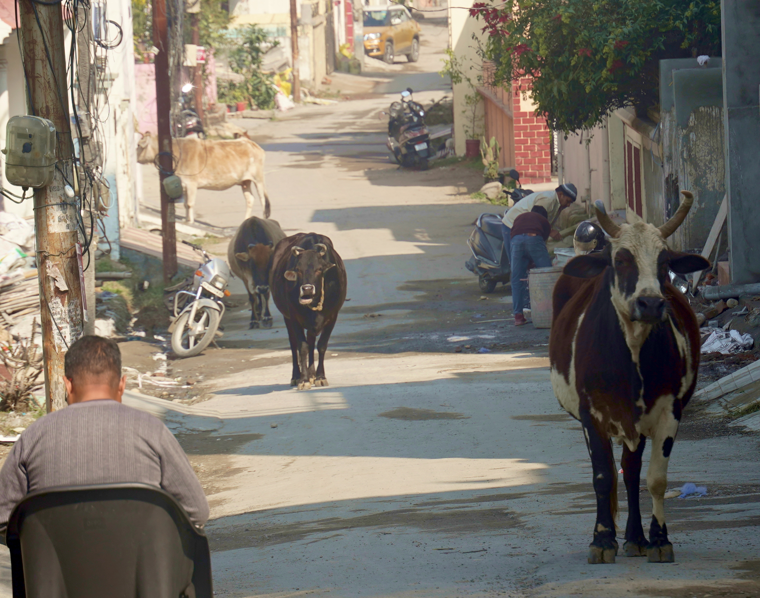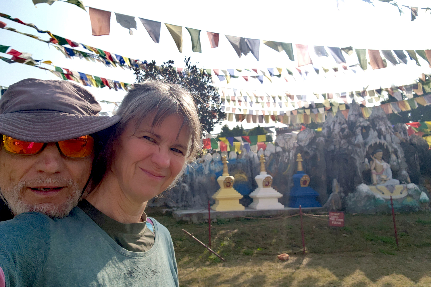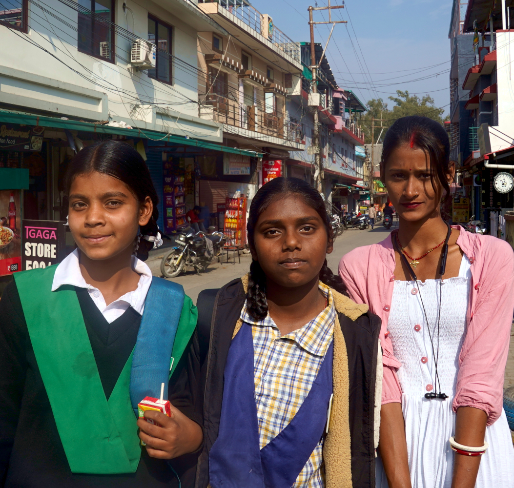 With one more full day to explore Dehradun, we go strolling again through the adjacent Tibetan neighborhood, where we encounter three schoolgirls who are quite curious about us, asking where we are from, and so on. And like many souls we encounter in India, they want to pose for photos with us.