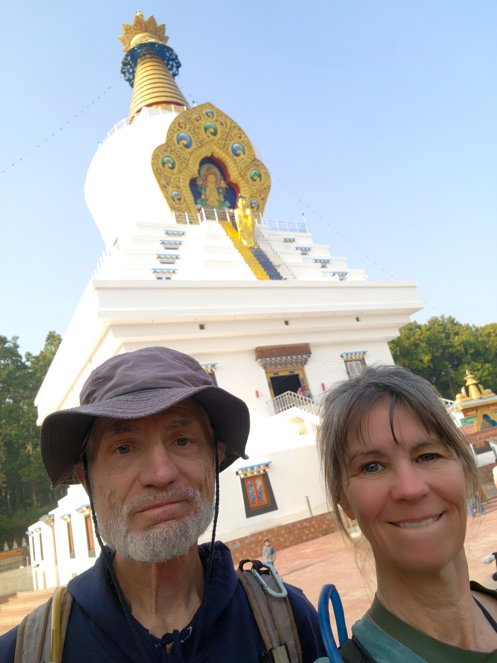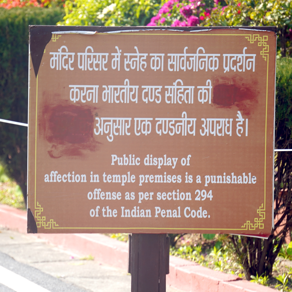 One of the temples requires an entrance fee; and while we’d normally balk at such a thing, this admission per person is a whopping three rupees (about three and a half pennies), so we can’t resist coughing up what is, without a doubt, the lowest admission fee we’ve ever paid. After we fork over this princely sum, we have to deposit our shoes at the booth, even though the temple itself is across the street. The Asian custom of taking off shoes to enter a building (especially a sacred site) does not in itself bother us at all; but it’s often, as in this case, not observed in a manner that is particularly convenient or hygienic.