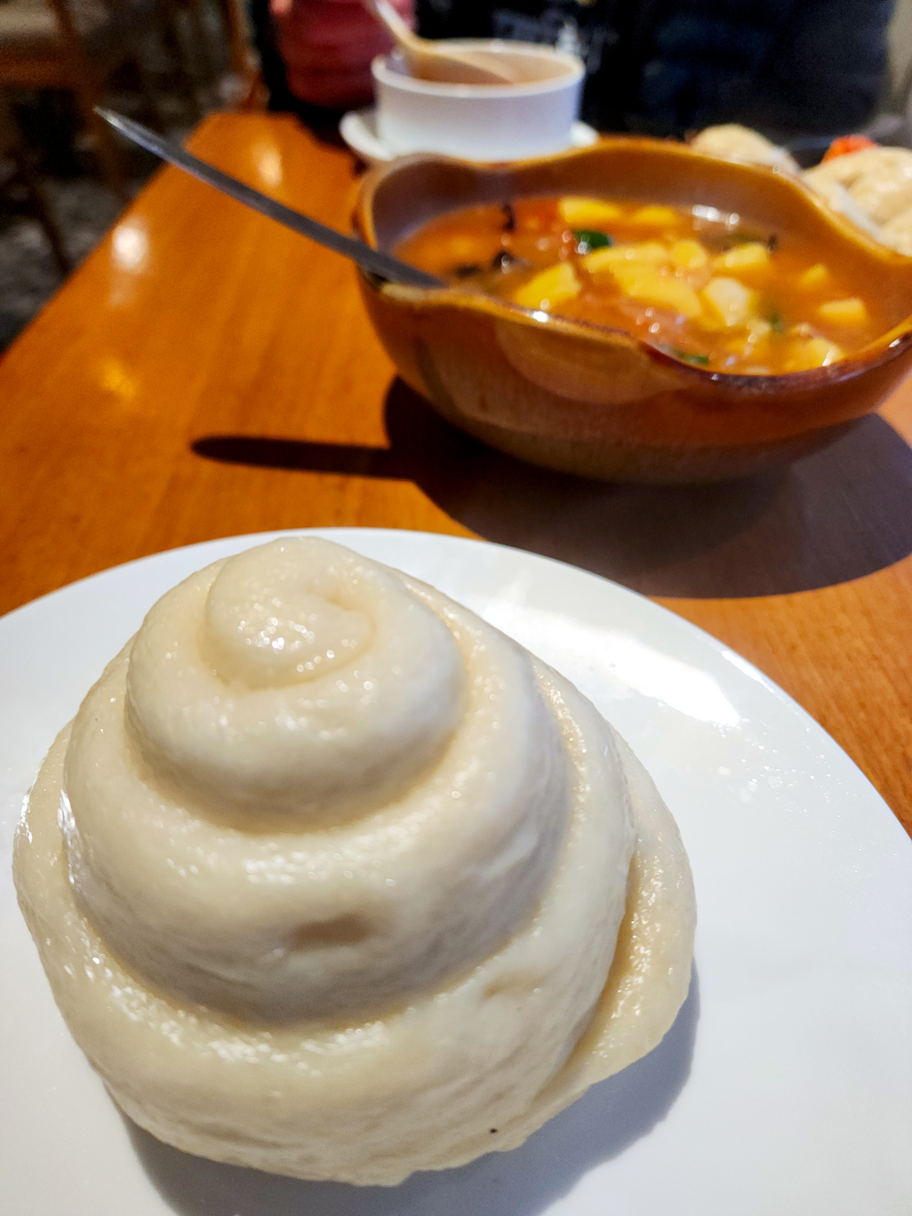 After we’ve rolled our minds around Mindrolling for a while, we go back for one more meal at the nearby Tibetan restaurant, Gangchen. Again, excellent food at a very reasonable price.