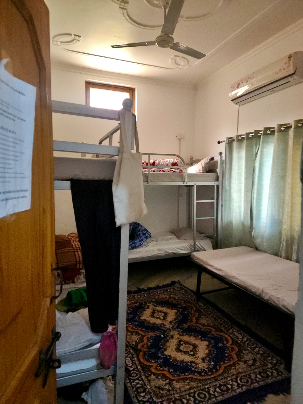 The next morning, we finish packing up to leave Dehradun. Kimberly spends some time becoming acquainted with our new roommate who came in the previous night, a girl from France — we are in a small hostel, in a room with 5 bunks, though initially we’d had it all to ourselves. This young lady is on her way to Rishikesh, from which we came not long ago, to train as a yoga instructor, as Kimberly recently did.