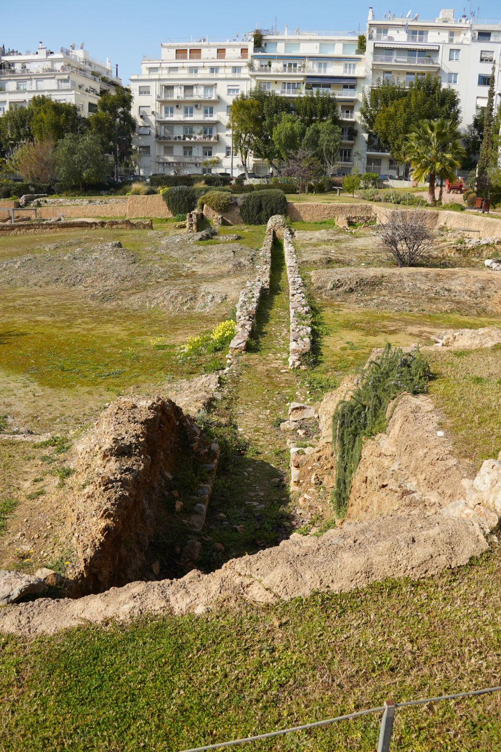 Nothing remains of the temple but a few fragments. And amazingly, they weren’t uncovered until 1996. And even then only by accident, in the course of excavating for a construction project. (It must be difficult for anyone to plan on building something new in Athens, since they always run the high risk of having archaeologists take command of the property.) Nowadays, the site is a park. And when you amble through it, you can almost feel your toes absorbing from the soil the stray bits of colossal wisdom shed by the greatest minds in the planet’s history.