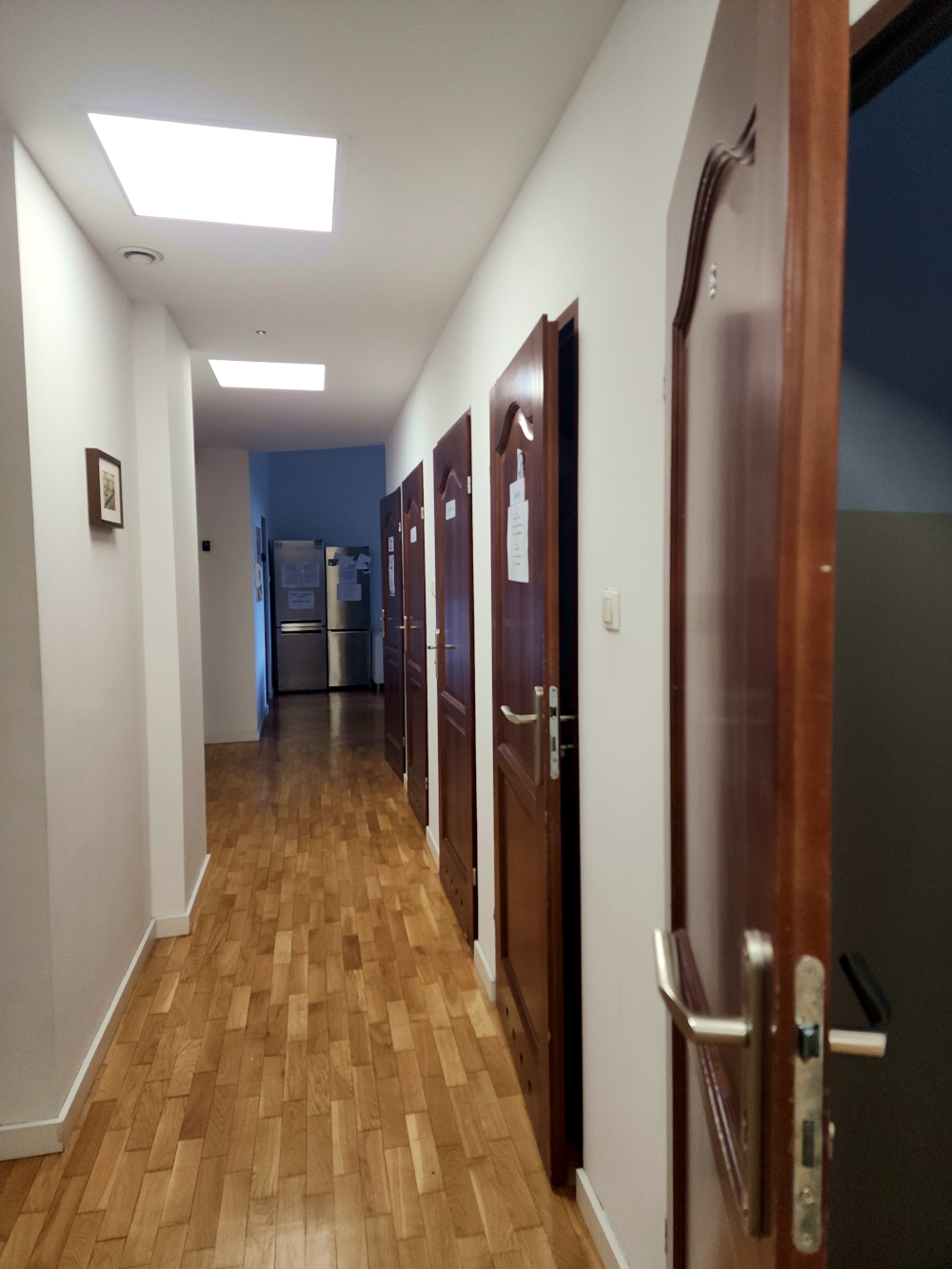 Going up to the third floor on the elevator, we enter the code and and then enter our new digs, a charming flat with 6 guest rooms, several bathrooms and showers, a washing machine and a shared, fully equipped kitchen. The perfect place to spend a few days. It’s quiet (at the moment at least, as only a couple of other guests are around), and warm — entirely too warm when we arrive, so we have to turn down the thermostat in our room.