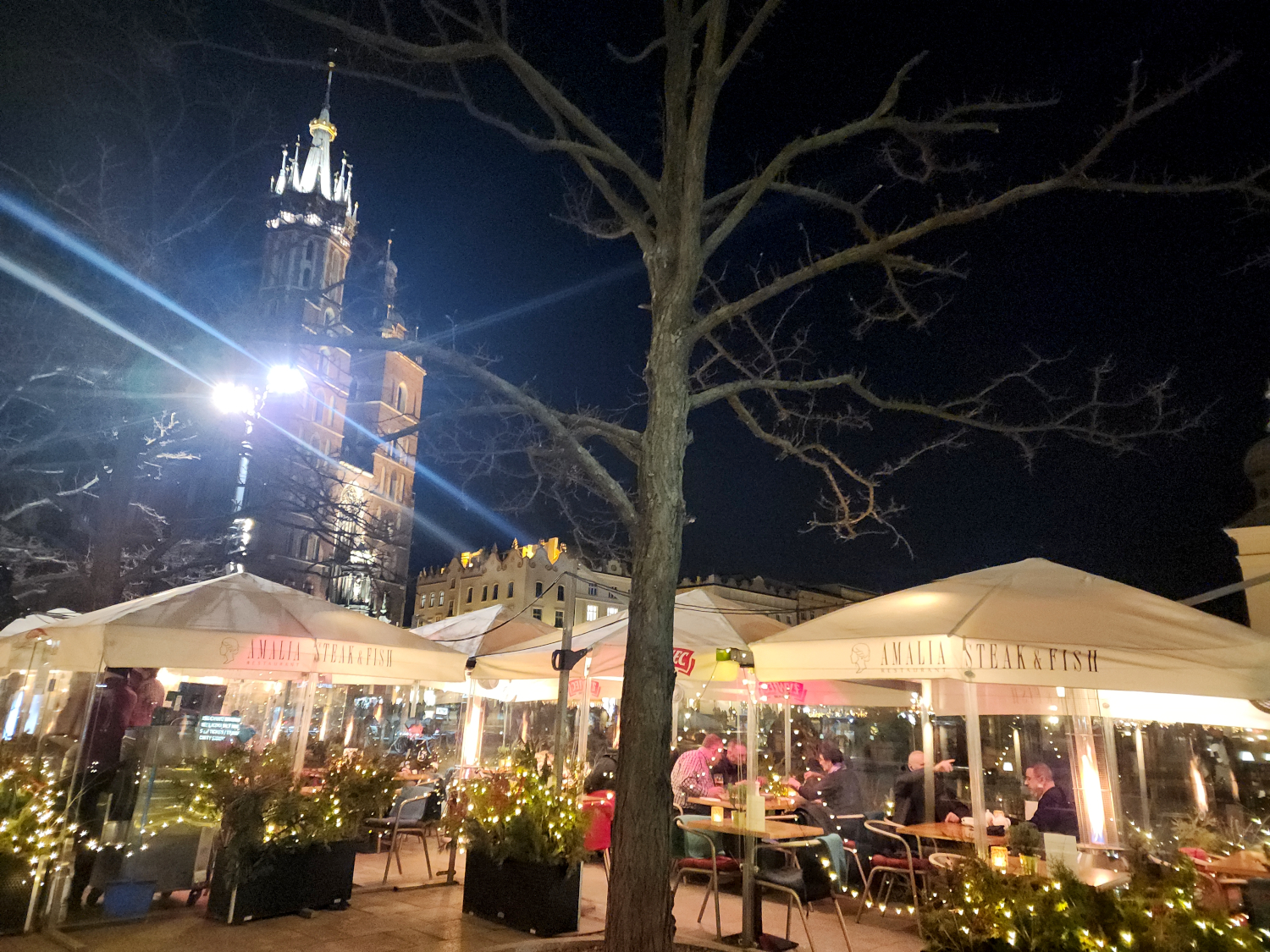 So we hoof it back to the restaurant, which is only a few blocks away. It’s in the central square of Old Town, which is still festively festooned for the holiday season.