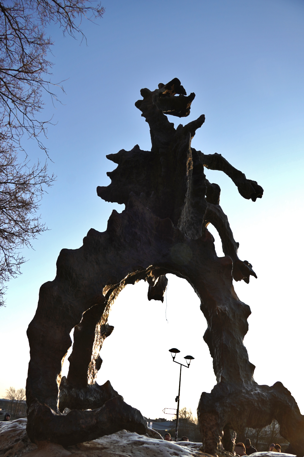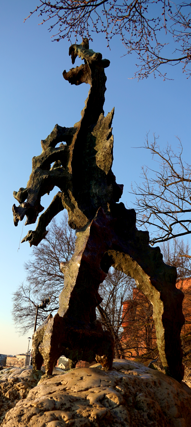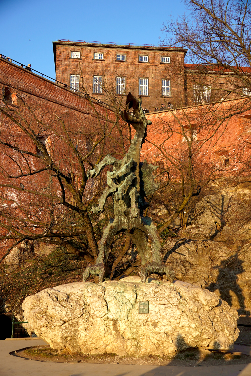 When we arrive at the dragon’s lair, a crowd has assembled, along with a gaggle of souvenir vendors, and the atmosphere of anticipation is as thick as dragon breath. The dragon (Smok in Polish) has become rather fussy with all her centuries of fame, and only makes appearances at certain times of the day, and only at certain times of the year. On our previous visit, which was also in February, she was not slated to greet her fans at all; but we managed to see the fire-breathing display anyway, courtesy of three maintenance workers who happened along and tinkered with the sculpture. But this time, we were here to witness the spectacle in all its glory, with a throng of other appreciative humans.
