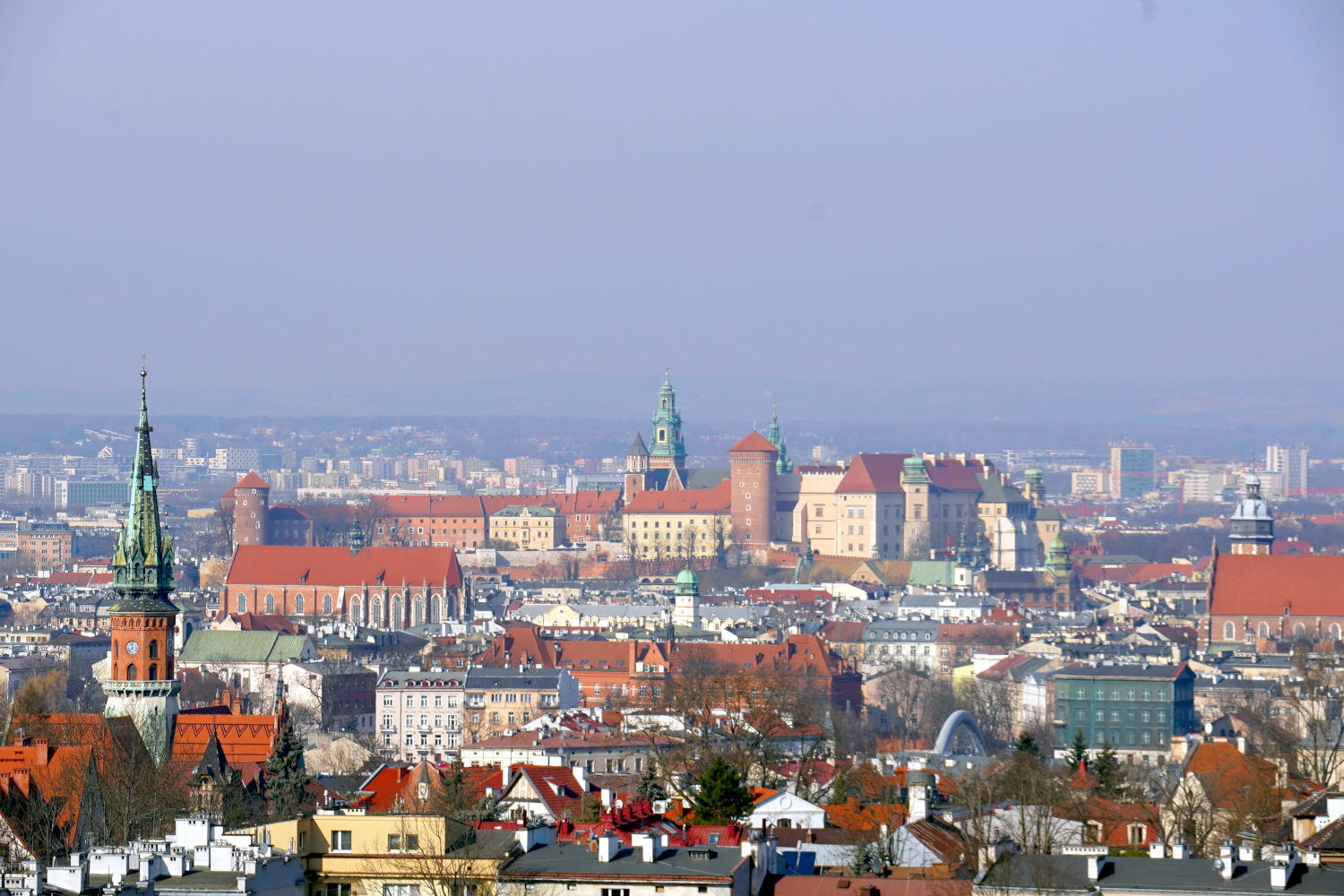 Whatever its original purpose, it’s now a prime lookout. The top offers one of the best 360 degree views of the city, and is an especially good viewing post at sunset; you can see the Vistula River, modern Krakow, and Krakow Old Town with its distinctive spires of St. Mary’s Basilica, among other things. And you can get a visual taste of Liban Quarry, right next door. This is a former limestone quarry, which Nazis mined with forced labor. Half a century later, it was the site of a replica concentration camp constructed as a set for the filming of Schindler’s List. The tops of the watchtowers, visible over trees that have sprouted up since Speilberg and company were here, are just visible enough to entice you to come on down and have a look-see. (And yes indeed, we will be exploring it at close range later.)
