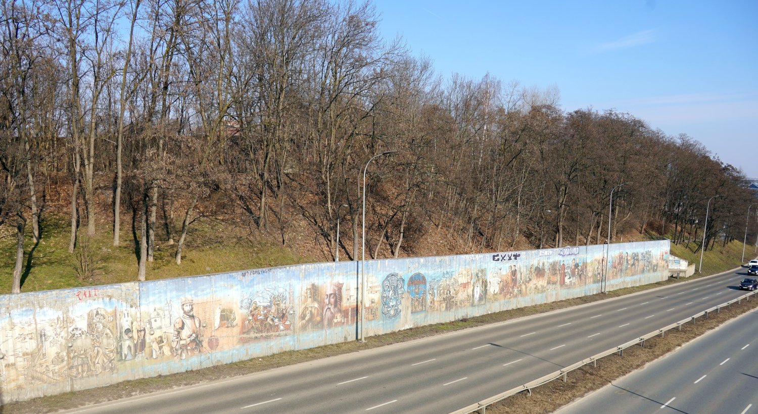 From there it’s just a short distance, past some superbly muraled walls, to Krakus Mound. And the mound is… well, moundish and moundy. It’s a medium-sized hill (52 feet high, and about 200 feet in diameter). A very symmetrical hill. And a hill with not many other features to distinguish it. But the real distinction is its history and lore, as evidenced by some of the archaeology buried within it. (And we’ll be learning more about that on a subsequent visit to a nearby museum). Not only is it uncertain whether this tumulus is indeed the burial site of a possibly real king, or when he possibly may have been really buried here, but apparently it was already here before he may have been buried in it. It may have been built as long as 2200 years ago, and used for pagan rituals.