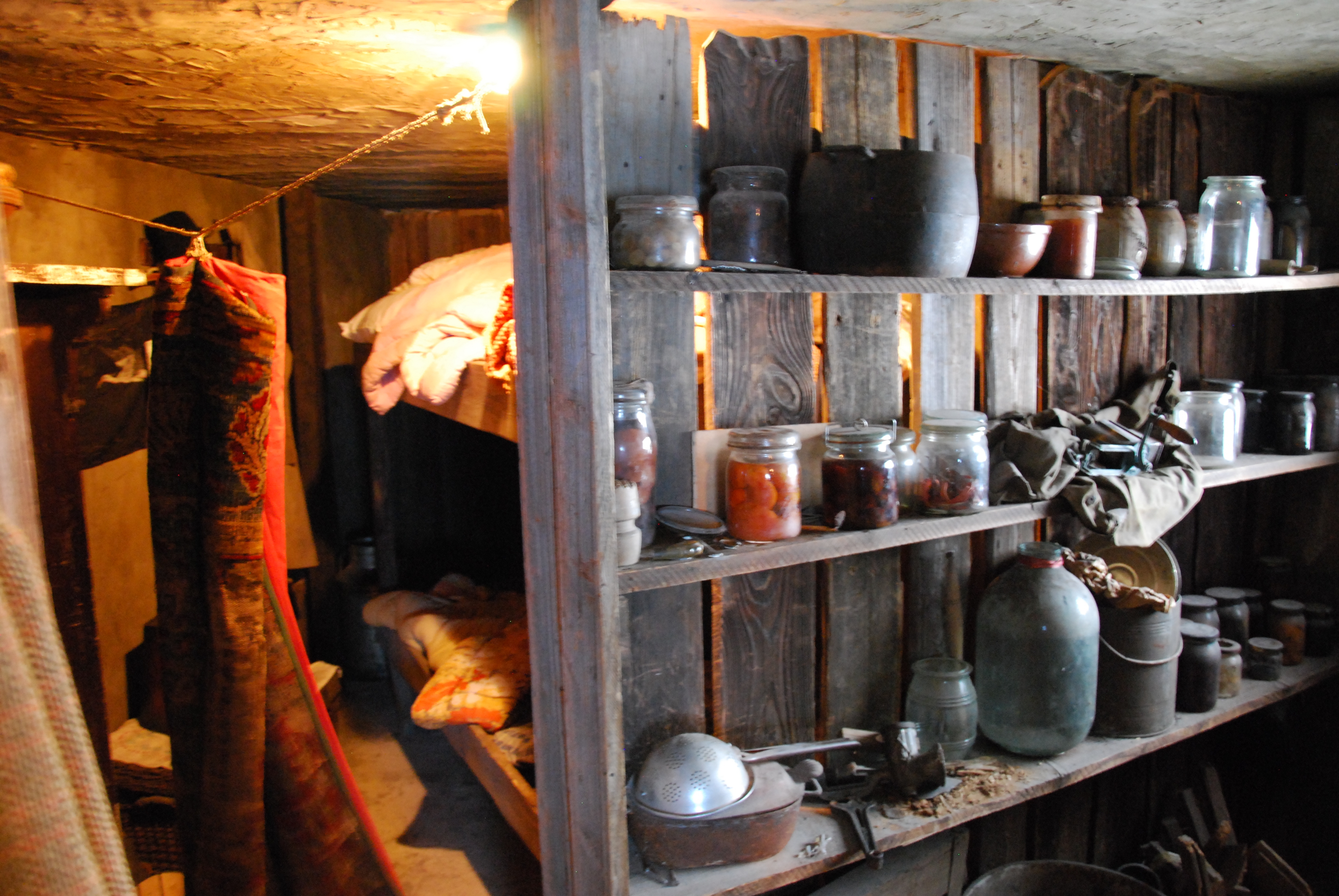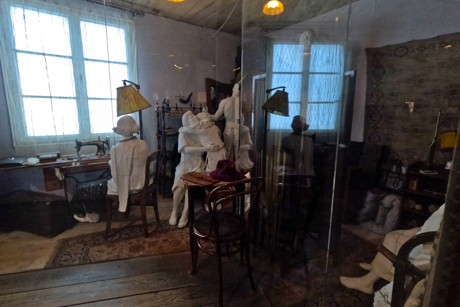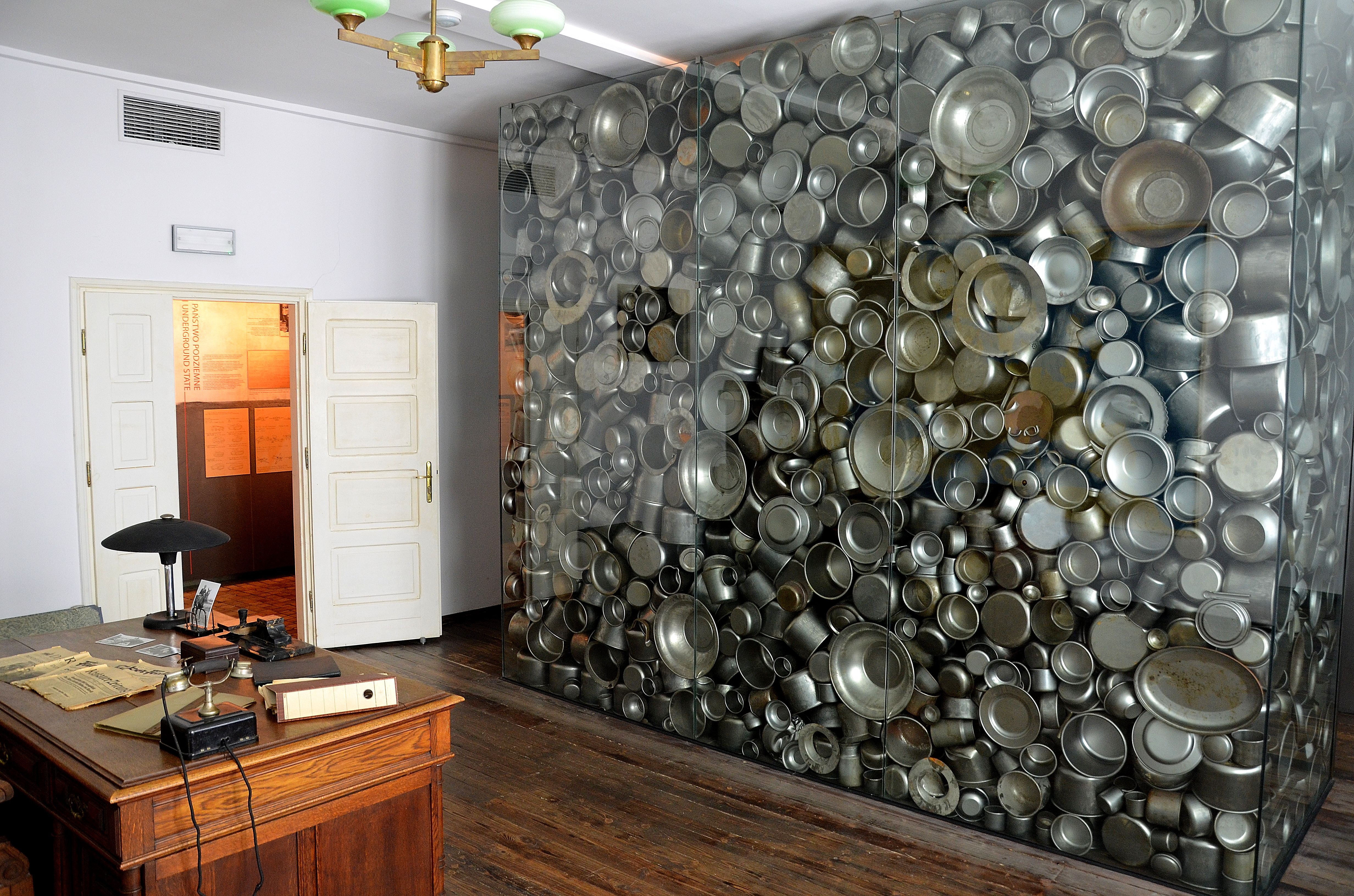It isn’t until fairly late on the self-guided tour that we finally encounter Oskar Schindler himself. His desk is on display and his office is restored, near a glass showcase of some of the pots and pans his factory turned out.