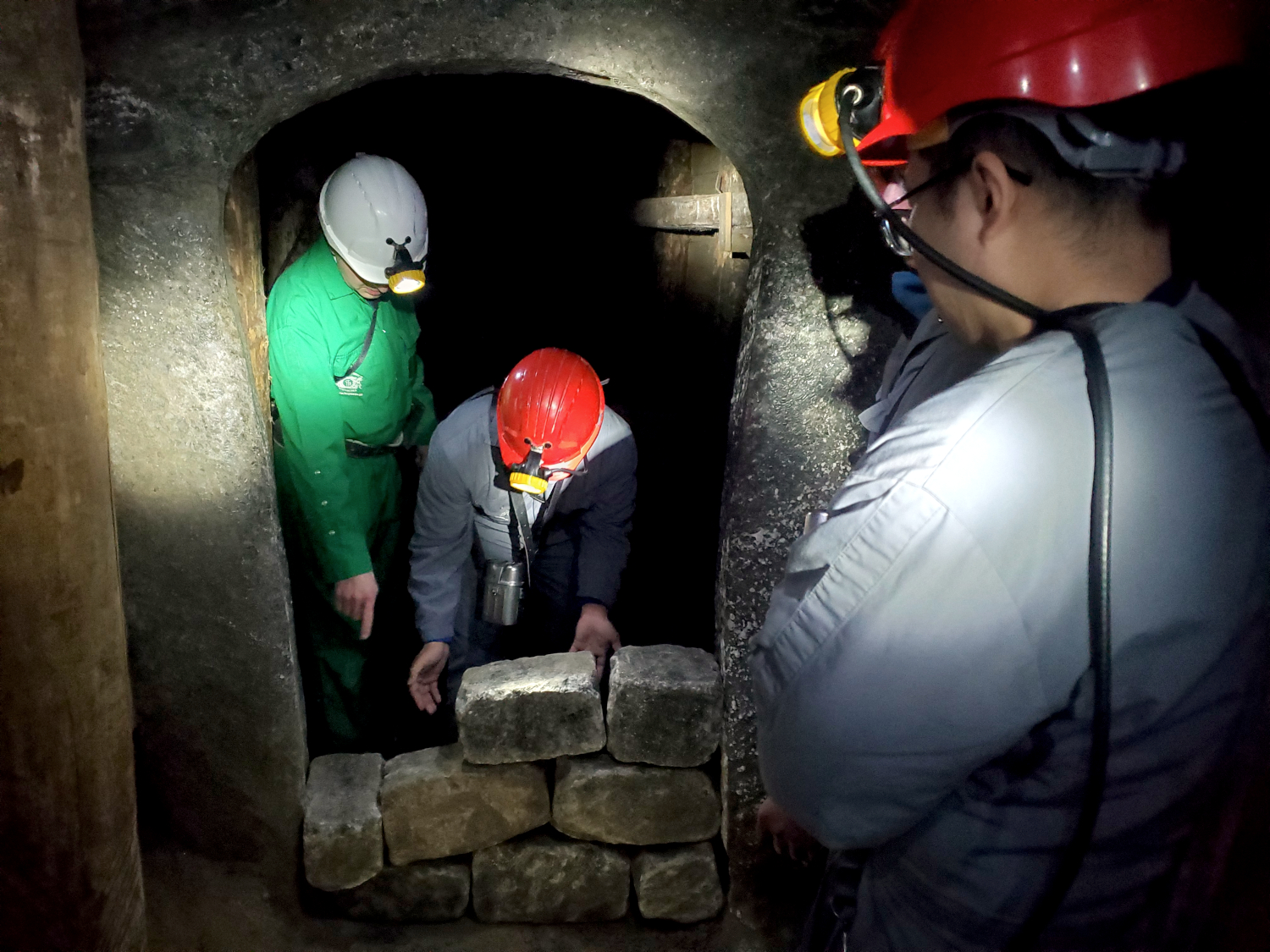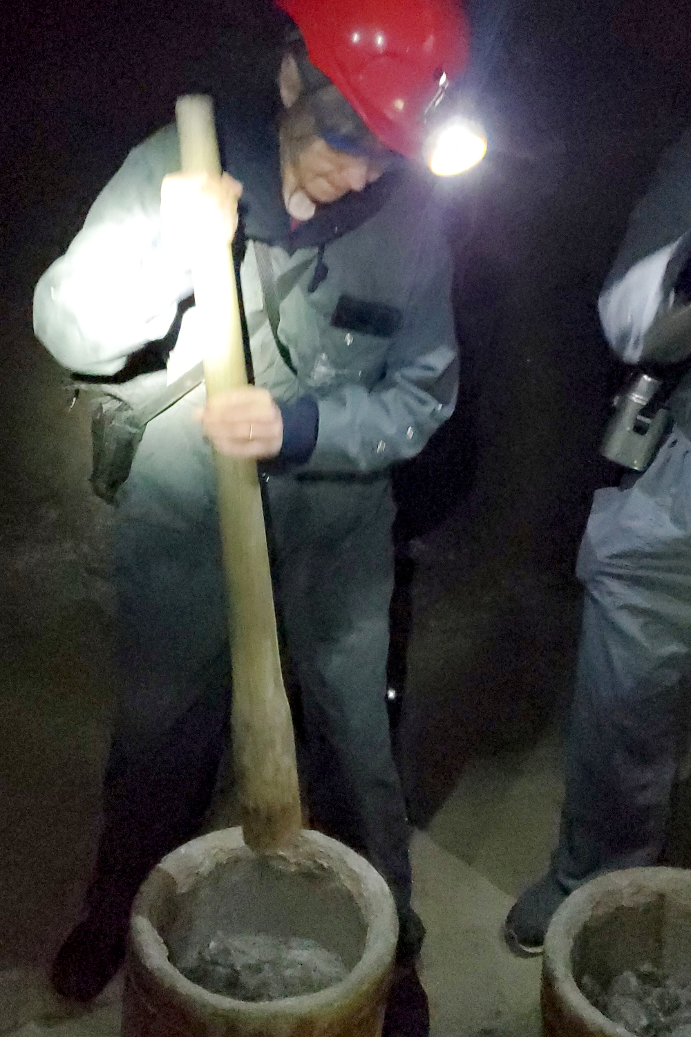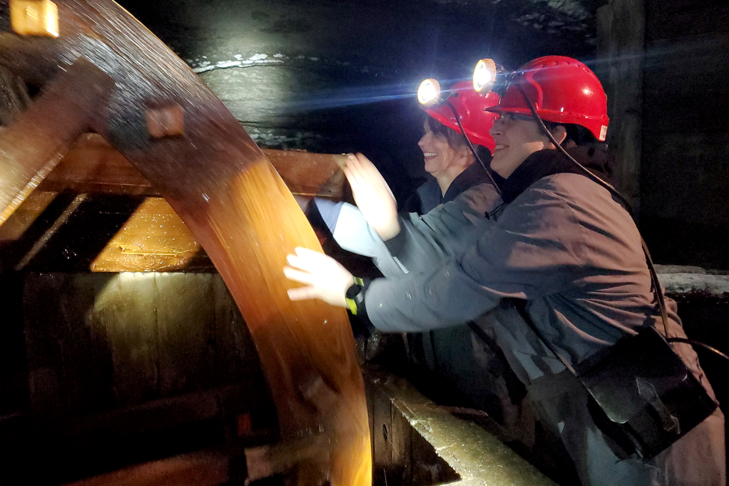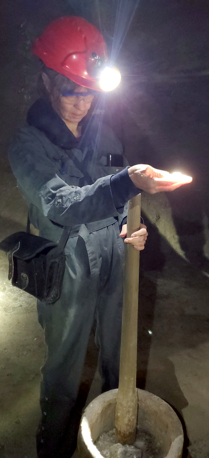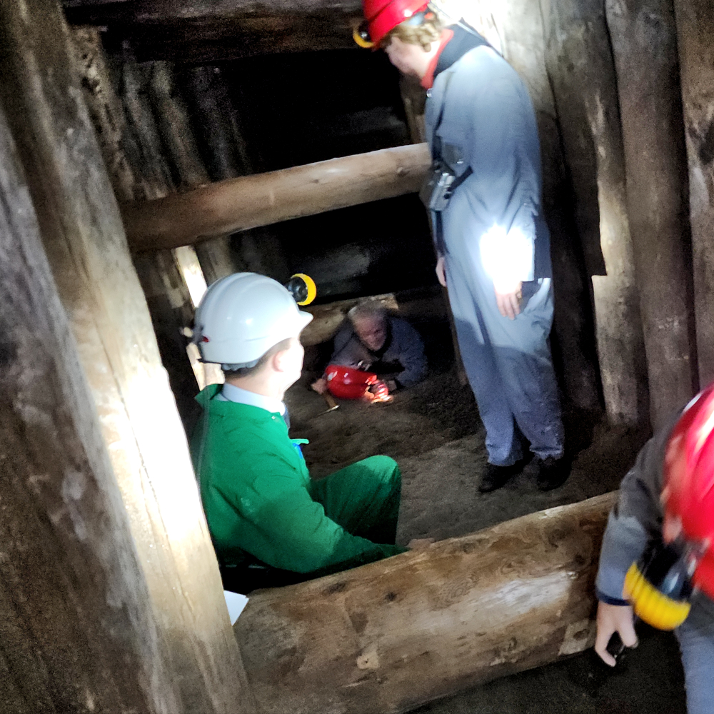 Then Stefan leads us to the elevators where we will descend into the nether regions. His diction is fair to middling — his command of English is okay, but he has a heavy accent and doesn’t speak very clearly. He’s amusing in a way, but also a bit annoying at times. He tries to pose as a demanding foreman of the mines, who assigns us physical tasks to do that seem rather capricious. And also rather sexist, at least at first — he doesn’t appear to want to give the females any task that is very physical.
