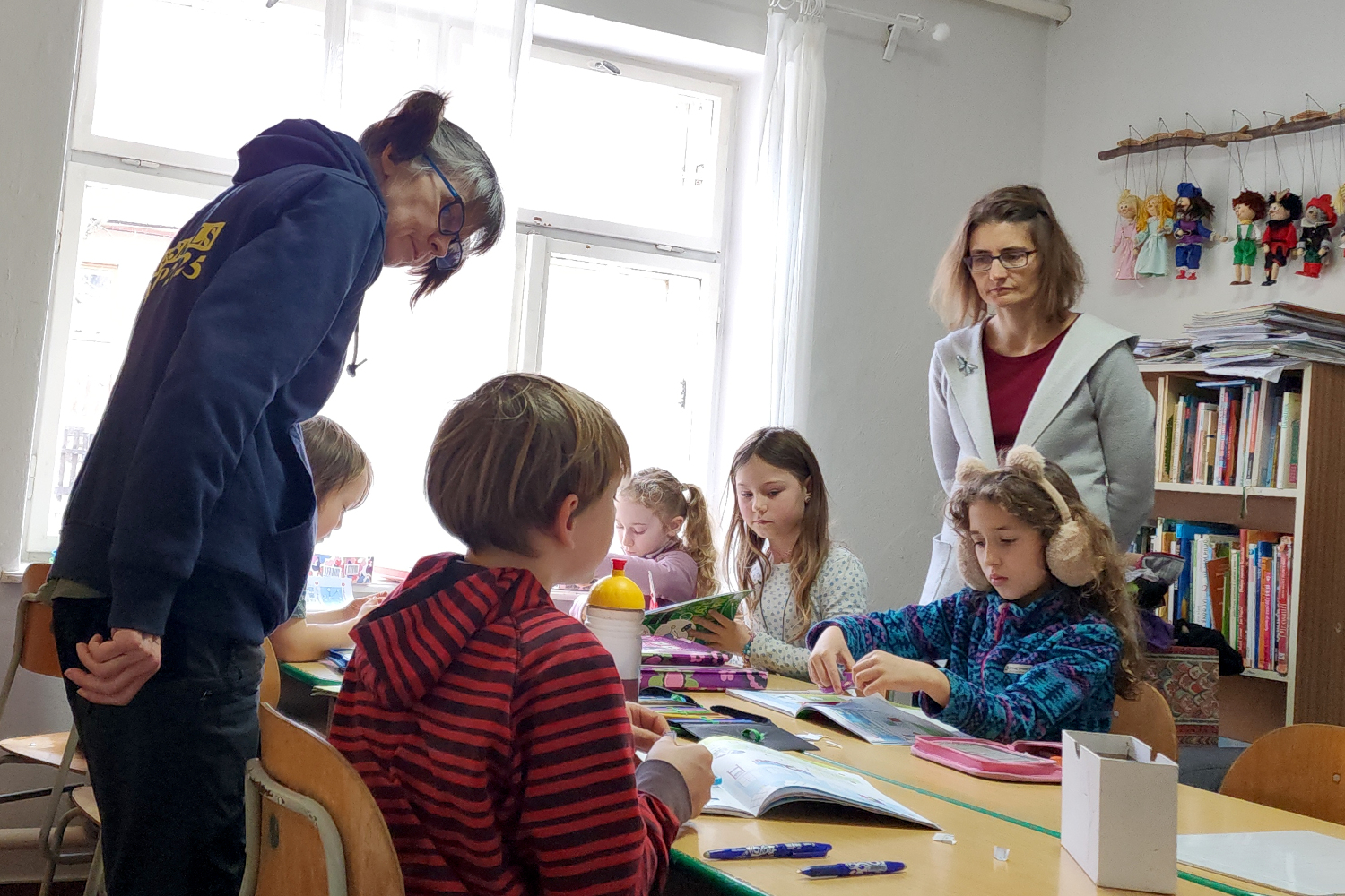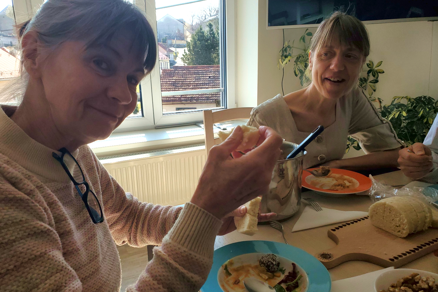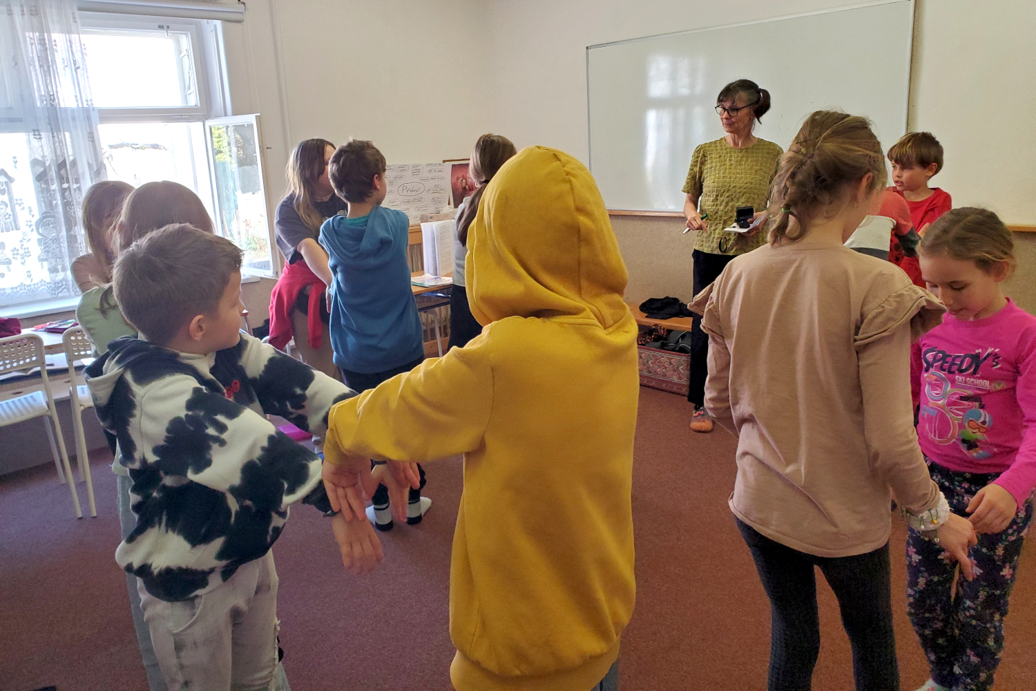 Our third week volunteering in Valašské Klobouky ran quite a gamut, from recasting the play for our student performance to dropping in on a theatre class at a local arts center to being guests at a church potluck. Oh yes, and finally buying the perfect pair of shoes for both of us (that is, for each of us; we don’t both wear the same shoes). All in this same quaint little town.
