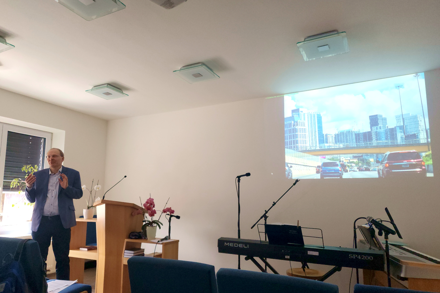 At the conclusion of this presentation, he takes questions from the audience, who also direct questions to us. Fortunately, they mostly speak some English (and if they don’t, he translates), because we have not exactly picked up the Czech. After this, there is yet another hymn and prayer.